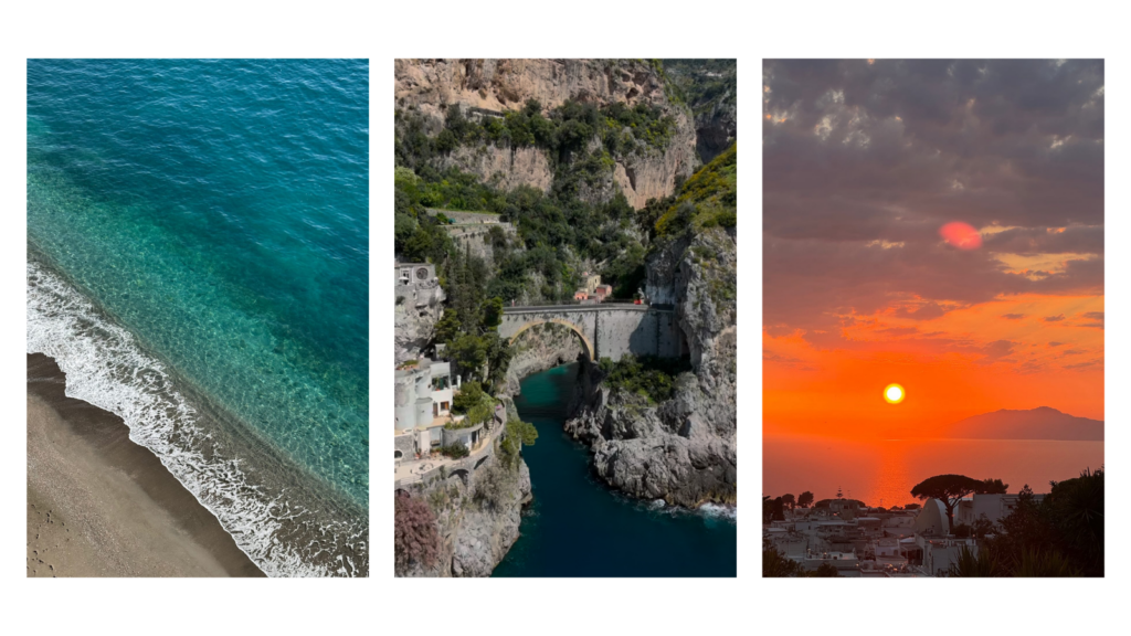 We can be on a balcony in Ravello, on a little street in Atrani, or on a boat in front of Positano – and still, it’s the same.